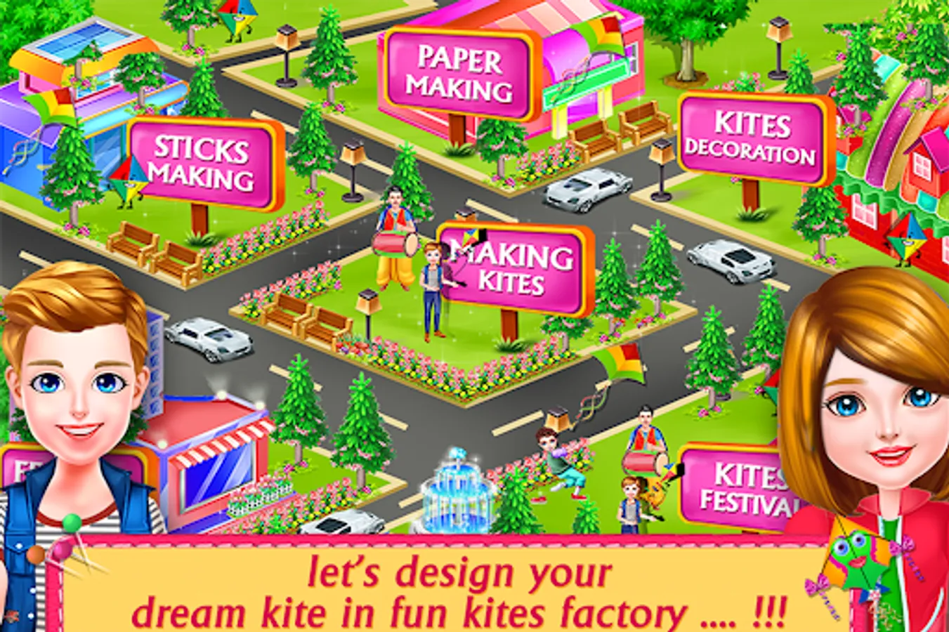 Kites Designs Factory Flying Festival- Fun Artist is the most played factory simulation for all the crazy kite flier out there. With various Chinese kites shapes and wing dimensions available along with the extensive list of materials such as sticks, frills, marker paint, thread, masking tape, scissors, standoffs, wooden dowels and bamboo dowels. We never knew making a kite and kite fighting can be so much fun. You can choose a kite to fly from a wide variety. Some of the options are diamond kite, bard door kite, Rokkaku Kite, Sode Kite, Delta Kite, Roller Kite tail, sled kite, Dopero Kite and Dual-line kites. All these kites will soar up into the air and dance and Twine with the wind.