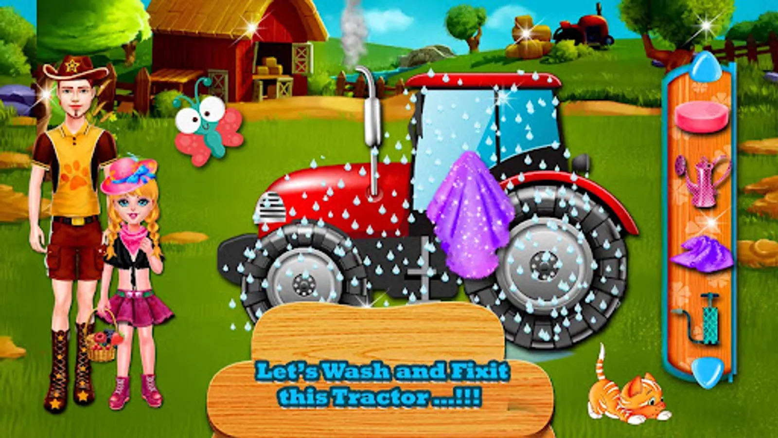 Come on boys! Show your skills and let’s fix and clean the tractor with sponge, surf, shower,tires pump for air filled and towel. Apply some sinner and start the tractor for your father’s fields for variety of crops.