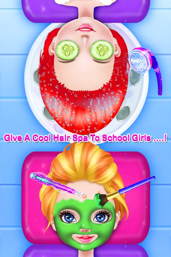 School kids hair styles & Makeup fashion beauty salon is a perfect crazy hairdresser hairdo hot braid styling game for school girls.School girls are very curious for their new haircut after the summer vacations are finished. This hairdresser hairdo braid design game will let school girls to apply bobby pins,clutch, shower, towel, back braid, hair catcher, head bands, dryer and other makeup artist & fashion makeover items for perfect hairstyling in hair salon. School girls wants their haircut from top hair salon of city.Try a simple ponytail clipped up with large colourful alligator clip or bobby pins or flower headbands. If you have time, add a cute headband having a few patterned headbands are recommended.Girls can choose fishtail, hot french braid as well.You can also do your hairs in school bathroom or classroom with fun just be sure you are not missing any classes or taking too long! you can do your hair on the school bus.School girls usually choose classroom students hair styles in front of school teachers and professor. It is the free hair colors game with coiffure hairdresser salon.You can choose short bob for your school classes.
