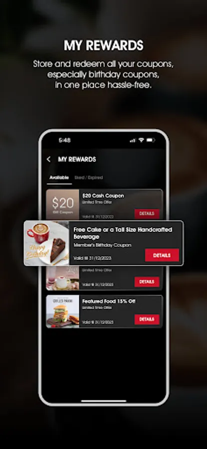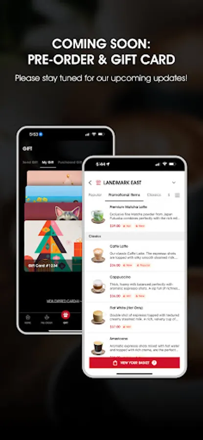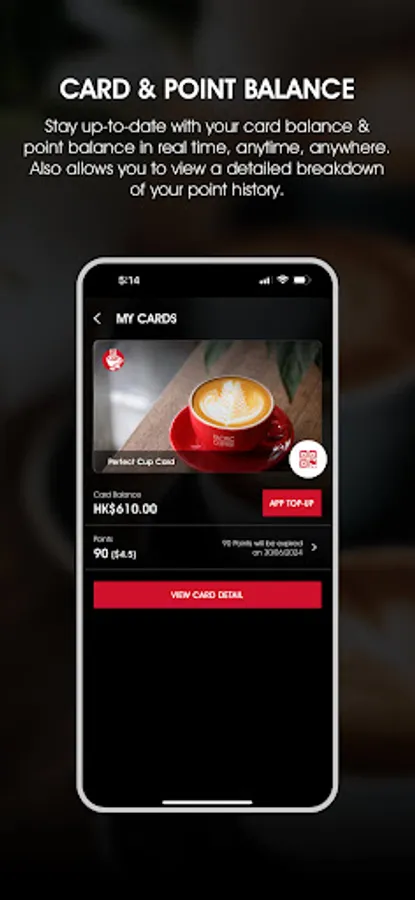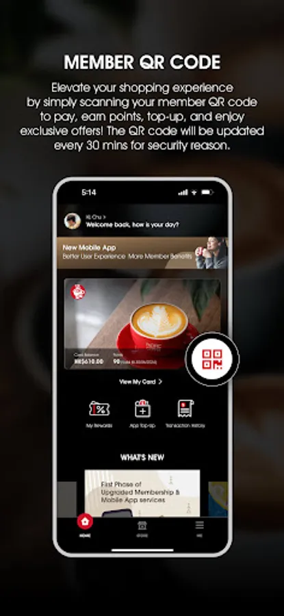 Download our latest mobile app with brand new design that is easily for members to review member profile, transaction history, points balance and find nearby stores to enjoy your perfect cup!