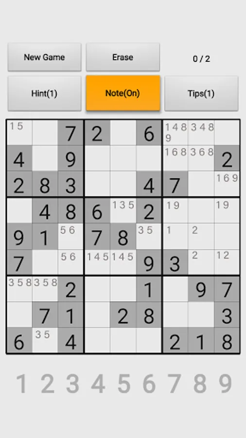 - Turn on note mode and take notes as you did on news paper. Remark all possibility on grid.