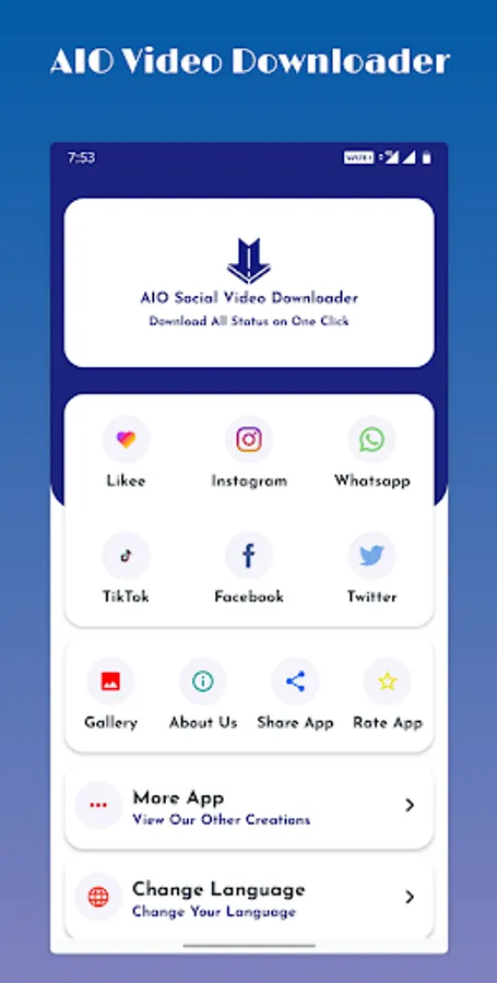 AIO Social Video Downloader is the best app that allows you to download all social media videos. You can download all types of social media videos like WhatsApp Status, Instagram, Facebook, Likee, Tik Tok, Twitter. You can also download the Tik Tok or Likee videos without Watermark.