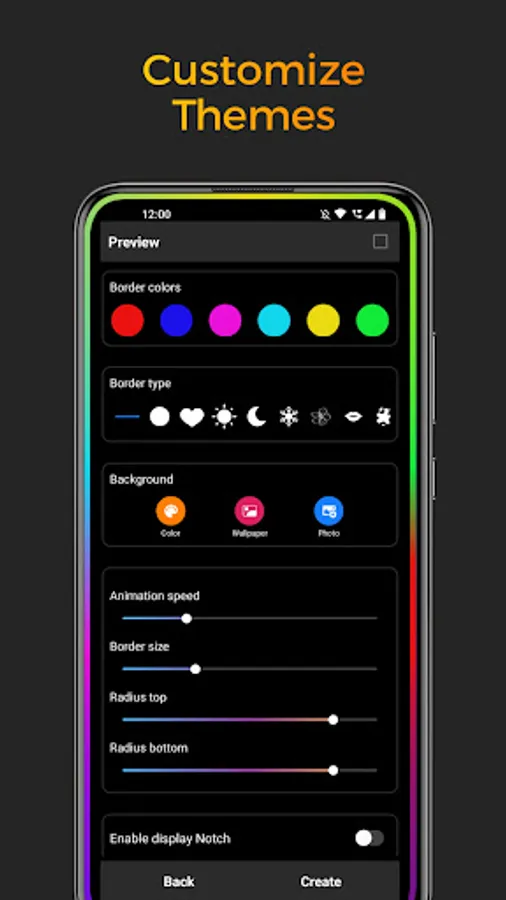 Customize the lighting as per your screen types such as Notch Display, Infinity U, Infinity O, etc.