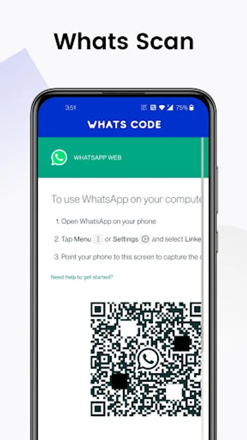 1) Open whats code for Whatsapp where you will find a QR code.