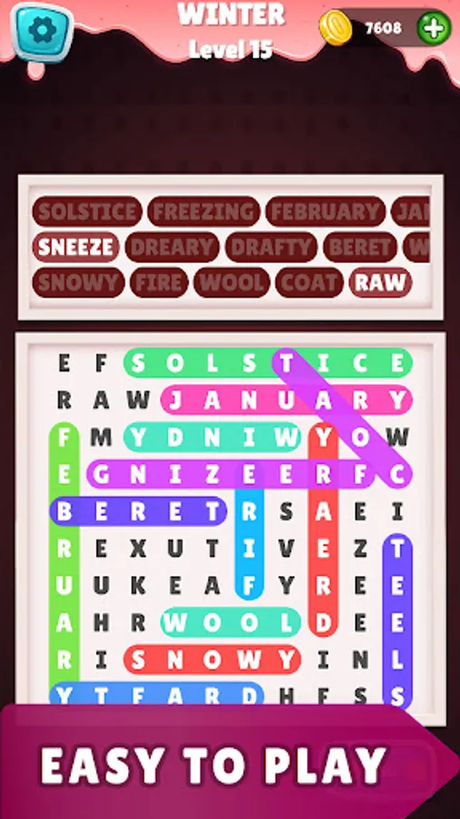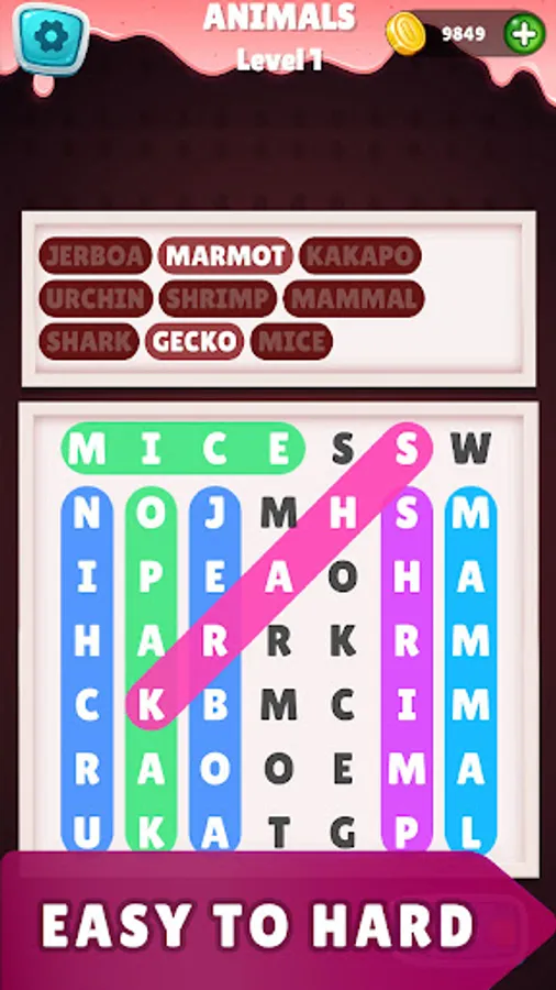 IT ’S EASY Search for words by swiping up, down, left, right, or transversely in horizonless word hunt games