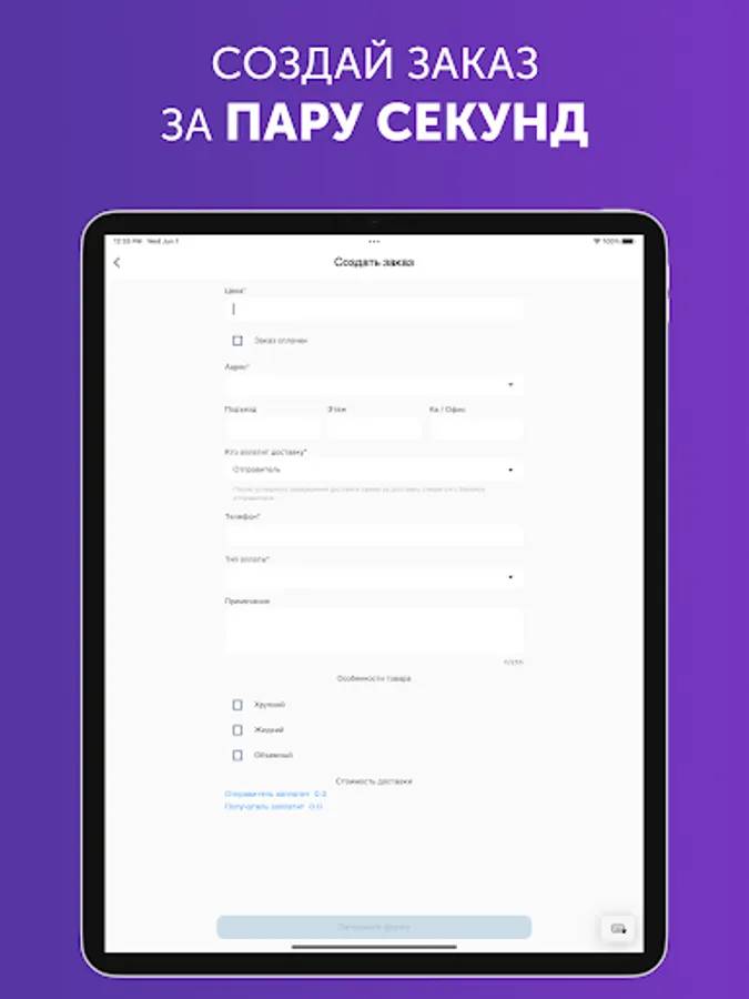 We provide courier services for your business. In the application, you can fill out an application for connection.