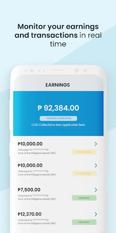 4.EARNINGS DASHBOARD. Monitor your transactions and manage your earnings with ease.