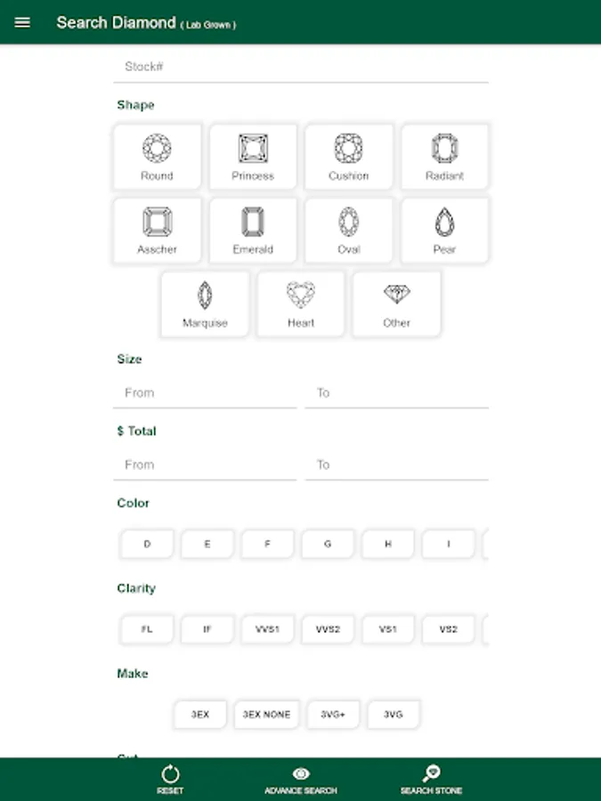 • Lab Grown: We have 4000+ exclusive lab grown diamond inventory.