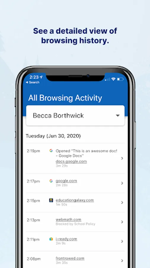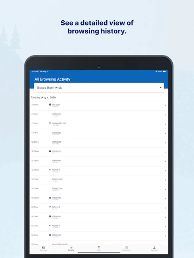 -View a more detailed browsing history for your student