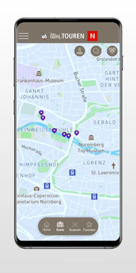 On an integrated map, you can select tours in your area or just head for individual stations. Follow in the footsteps of Maria Sybilla Merian, Jakob Wassermann or Friedrich Rückert. In the maze, listen to texts by the writers of the Pegnesian Flower Order or get to know the Group 47. Find the locations of Nuremberg's city library over the last 650 years and learn more about its history.
