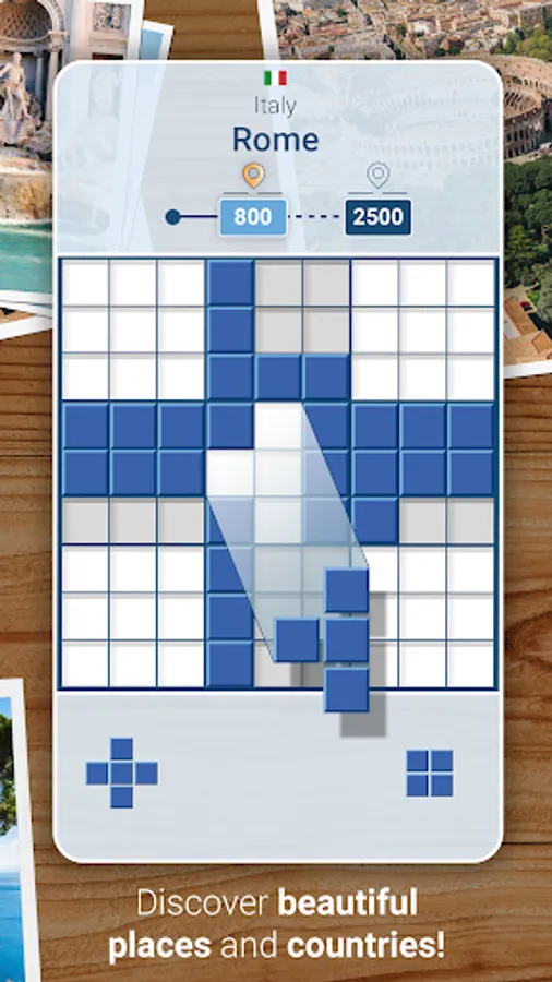 Marco Polo Travel Blocks, is a challenging block puzzle game in a Sudoku grid, combined with travels to beautiful places and landscapes. This calming and logical brain game brings relaxation while awakening the spirit of discovery.