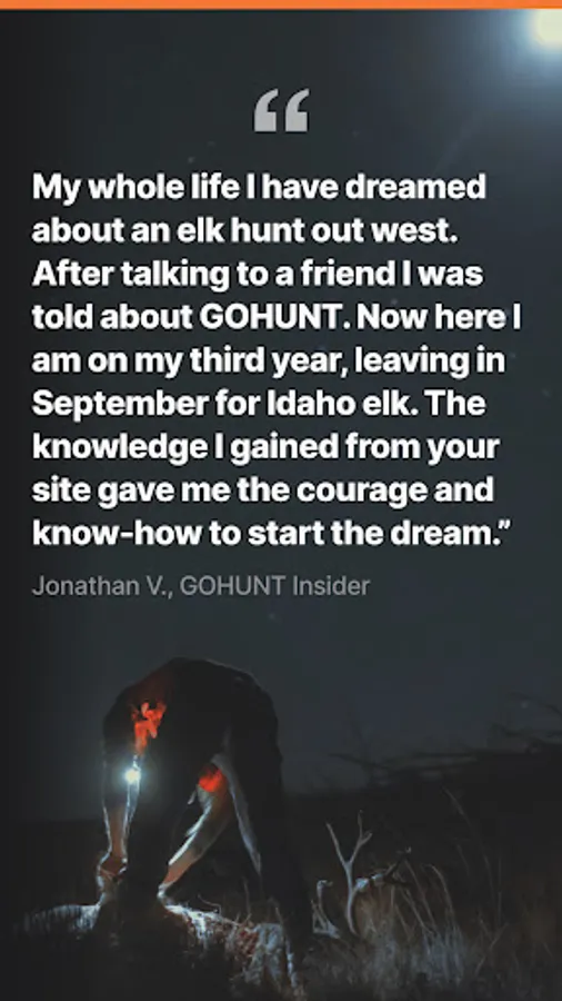 Trusted by expert hunters like Randy Newberg, Remi Warren, and Ryan Lampers, GOHUNT is the leading platform to empower hunters to find and plan hunts across the country. Whether you’re looking to hunt Elk in Colorado, or Mule Deer in Montana, no matter the state or species GOHUNT helps you get there.