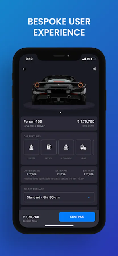 The new app provides enhanced features smoothly gliding on your finger tips and all in a cool dark mode experience with a bespoke design on the backbone of a highly secured technology platform to book your favorite and best in class luxury cars.