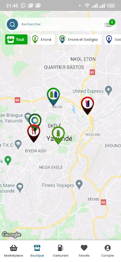 The application allows you to search for different zener points of sale.