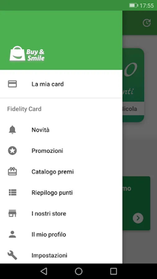 Buy & Smile is the app that lets you manage your store loyalty card of joining the program.