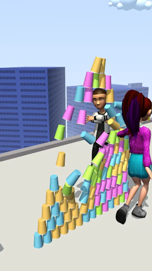 Even a soft touch to the stacked cups can cause a total fall, do you want to try?