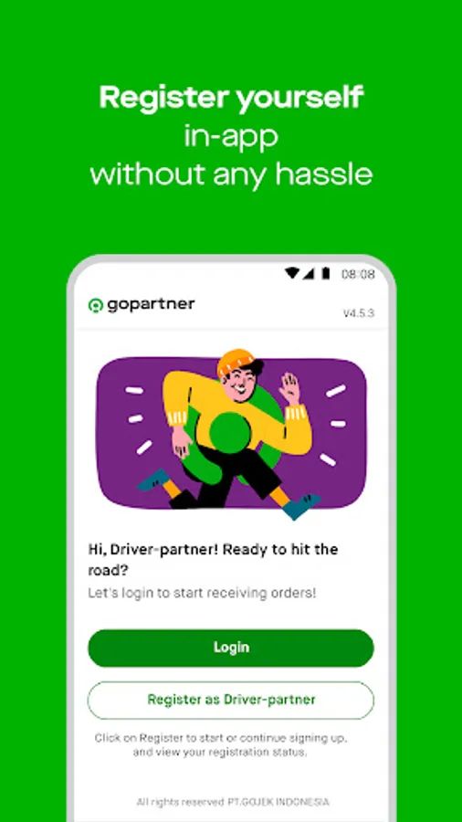 Step 2: Open it and tap Login, or Register as Driver-partner if you haven't registered.