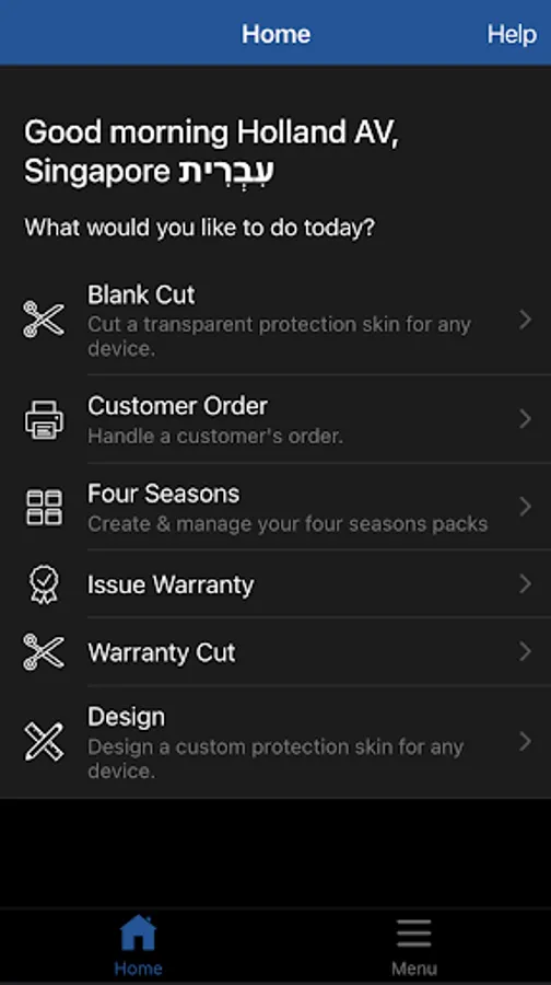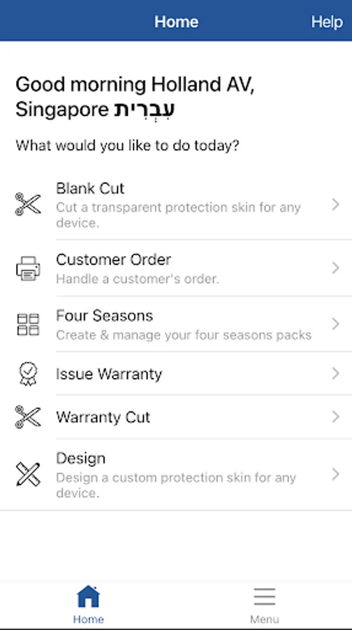 Utility app for participating stores to print and cut screen protectors and more