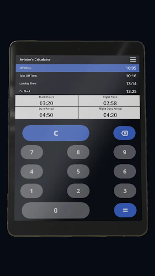 This app is a must-have for pilots who want to easily and accurately calculate their flight hours, block hours, duty periods, flight duty periods and stay within the regulations. With Aviator's Calculator, pilots can easily calculate their flight time and other important hours with just a few clicks.
