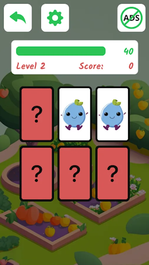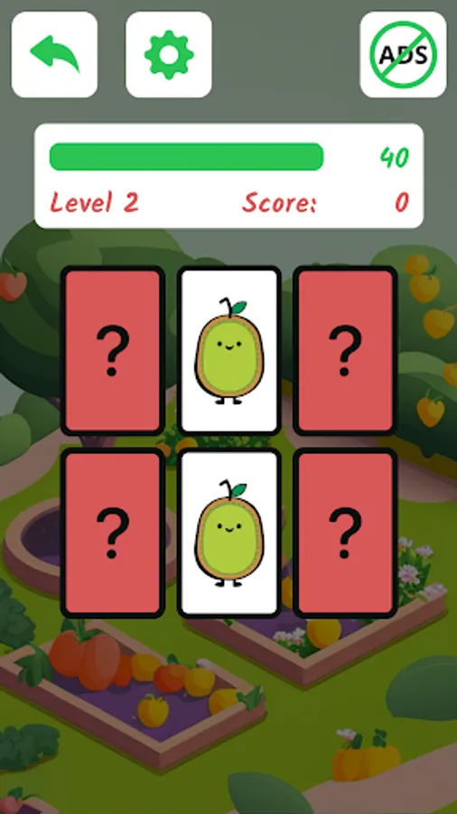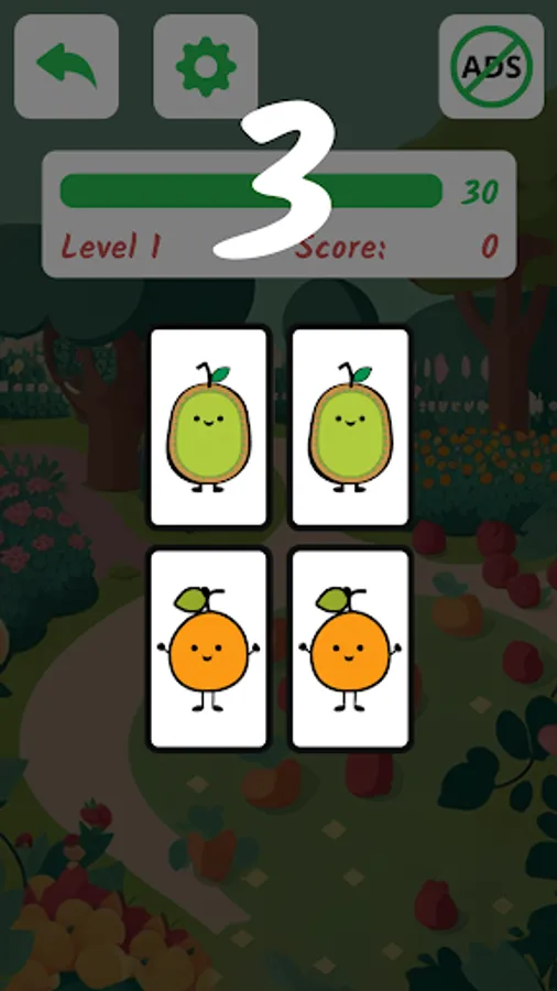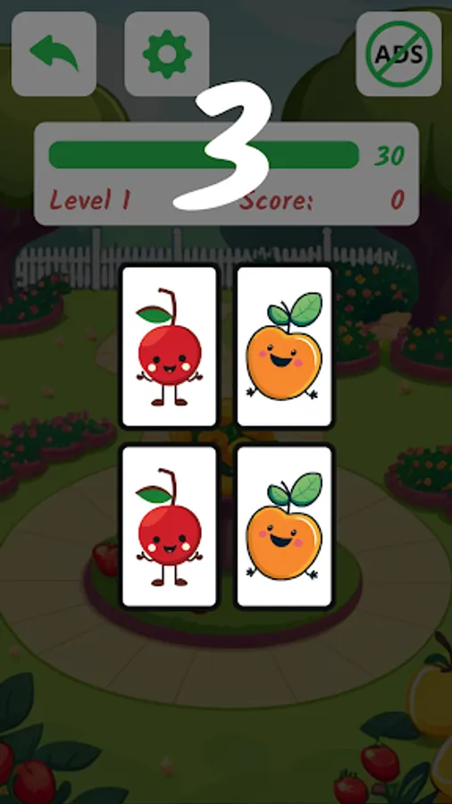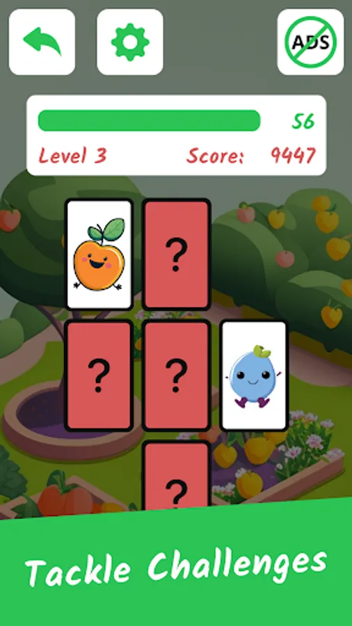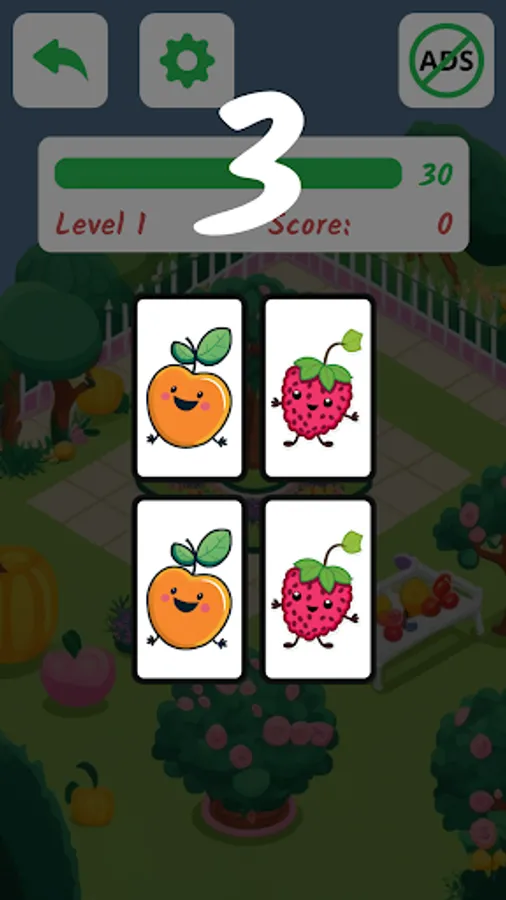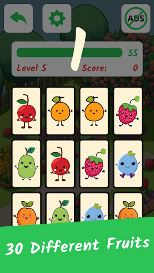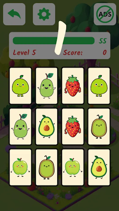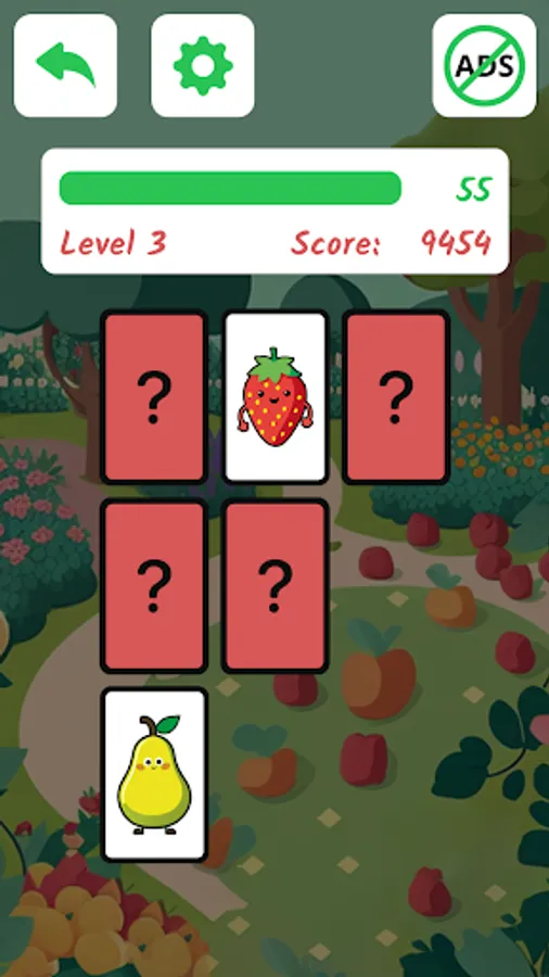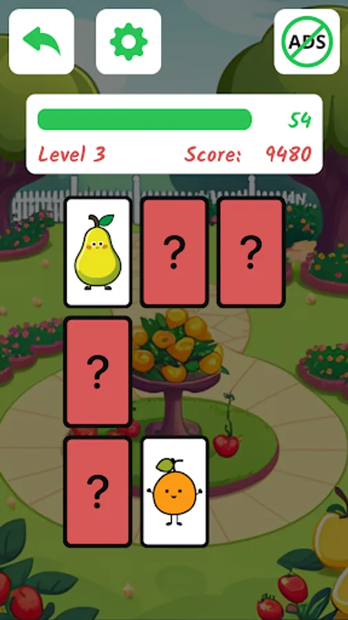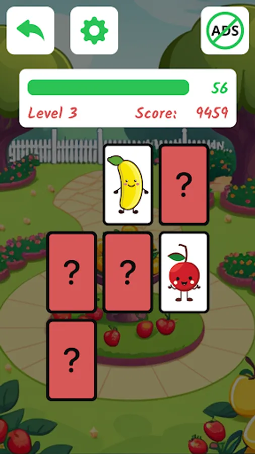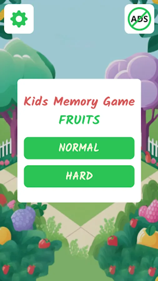 Our Kids Memory Game offers two difficulty settings: Normal and Hard. Challenge your children's memory skills by adjusting the timer in Hard mode to make the game more thrilling and engaging. With each level increase, the number of fruit pairs grows, offering an increasingly enjoyable experience that keeps kids captivated and eager to learn!