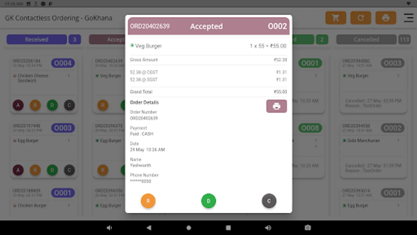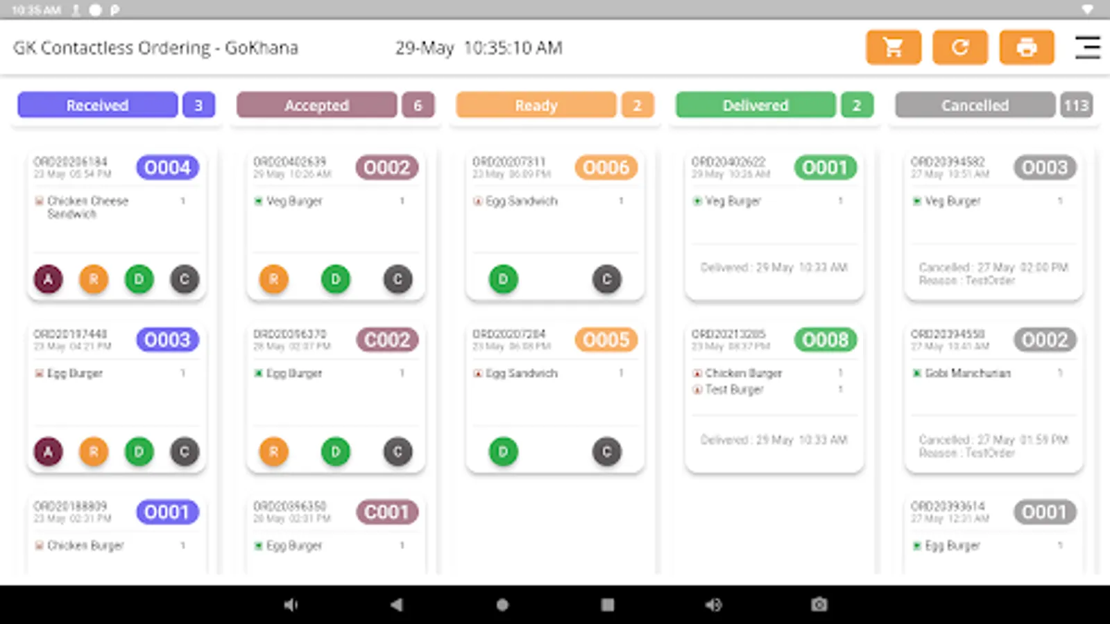 Mobile app designed to partner with the GoKhana Customer mobile application, allowing restaurants to interact with customers on the GoKhana platform.