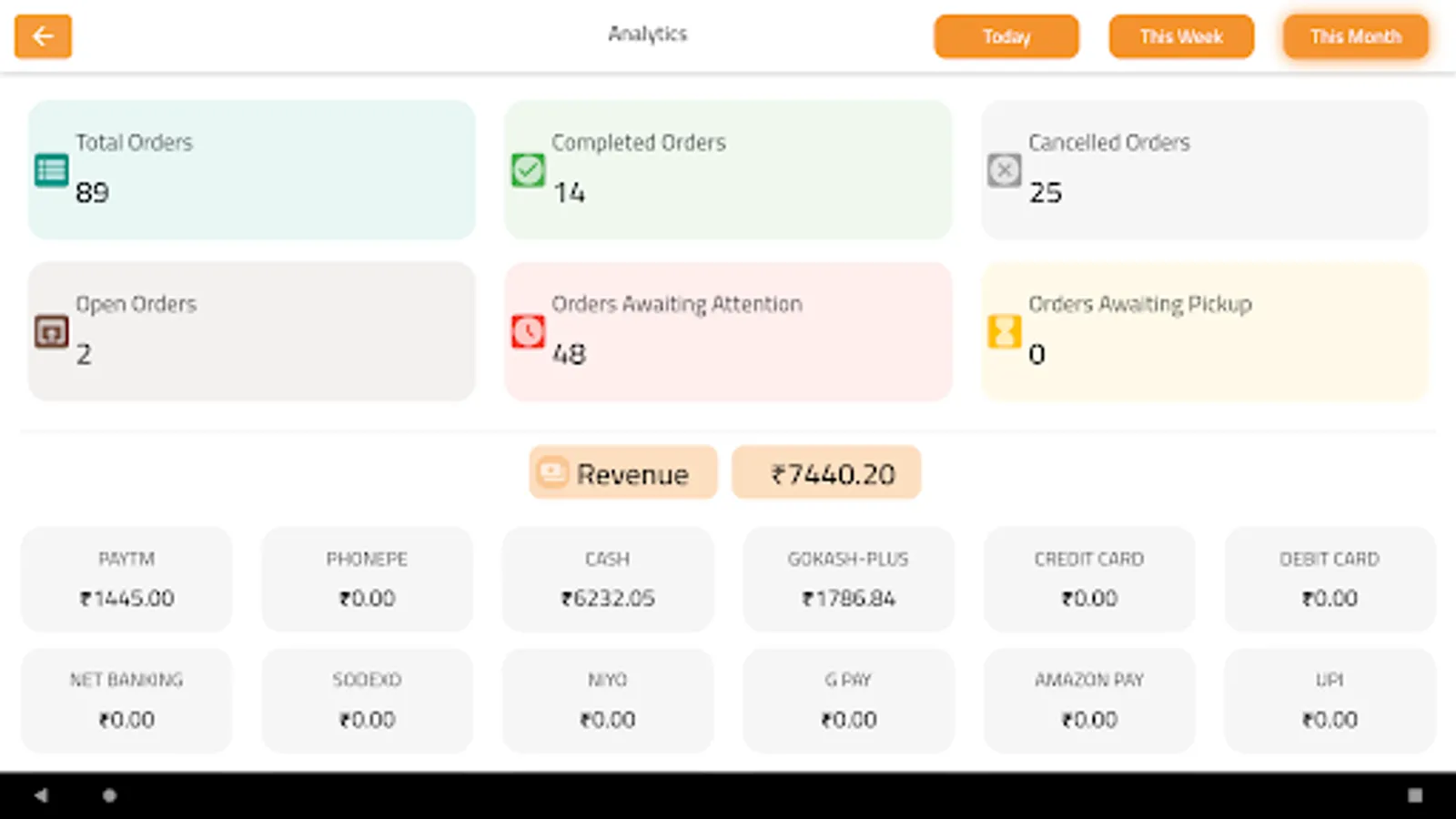 - Keep track of your performance – analytics on the GoKhana Partner app provides a quick view of your daily/weekly/monthly performance at a glance, from anywhere!