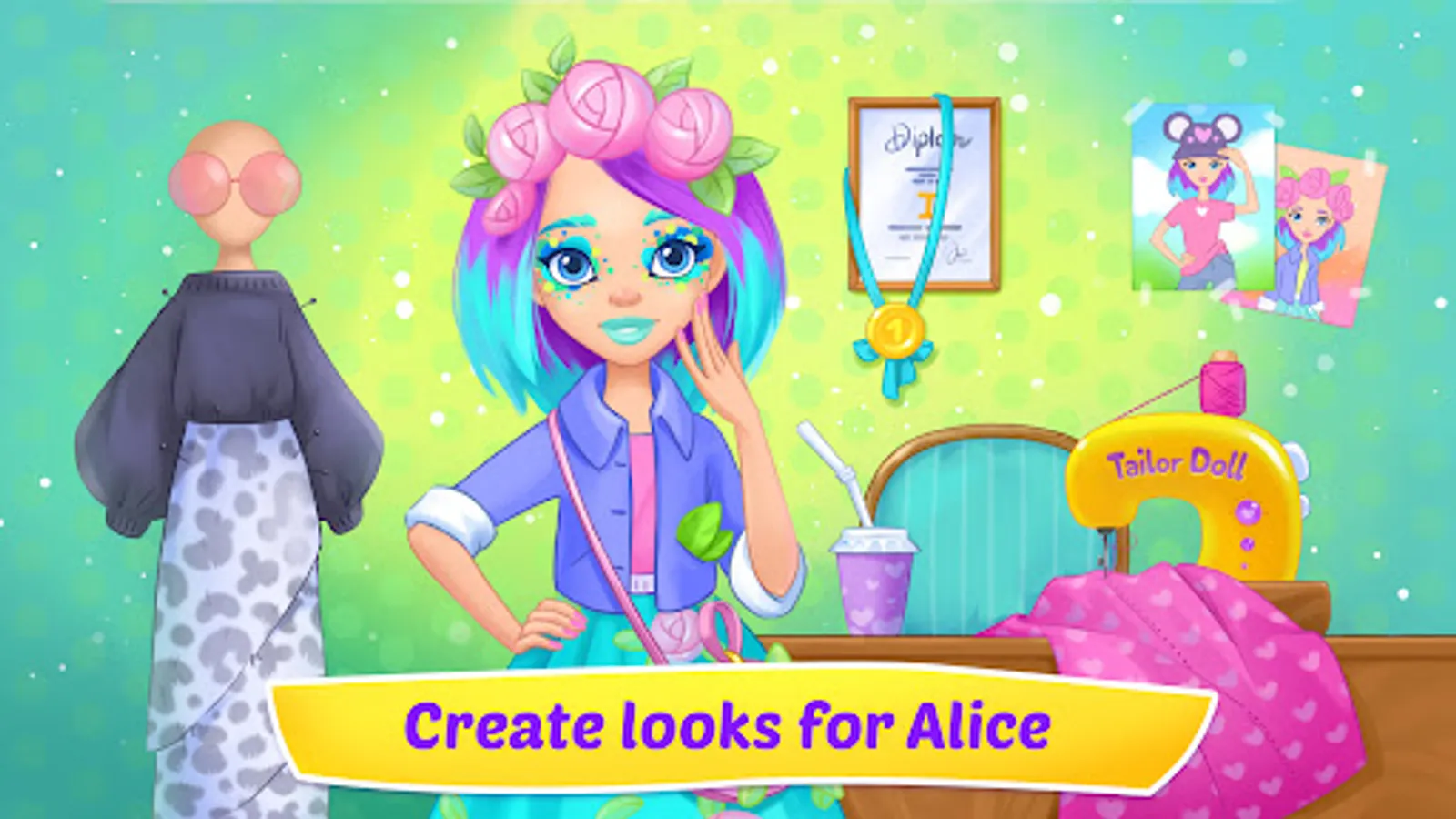 Together with Alice we will sew clothes - dresses, shorts, T-shirts, and skirts! We outline the contour, cut out the pieces of clothing and then sew them using a sewing machine. We will also need thread and scissors for work.