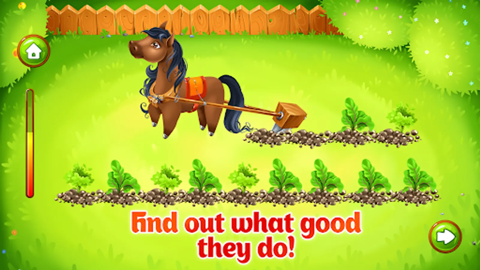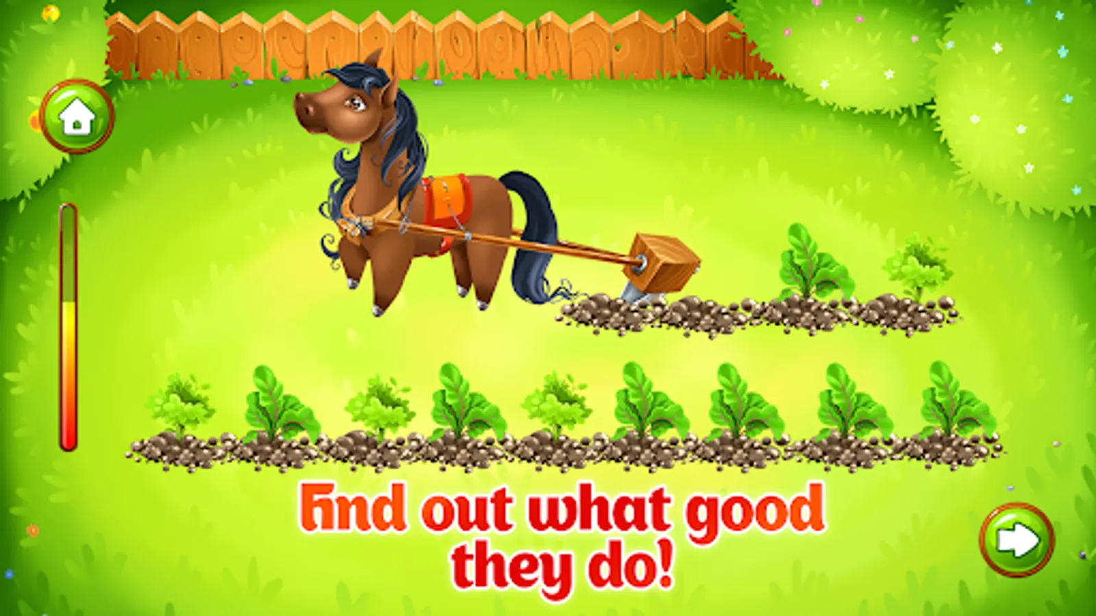 Start the free toddler games “Animal Farm for Kids” that is important for intellectual development for 3-5 years, where girls and boys meet a dog, a horse, a cow, piglets, even a whole chicken family. The free animal games like this one train the order of priority, logic, fine motor skills. Take care of animals, create your garden and gather a rich crop later. Little ones explore the farming abilities, the essence of animal farm nurtures skills of care too.