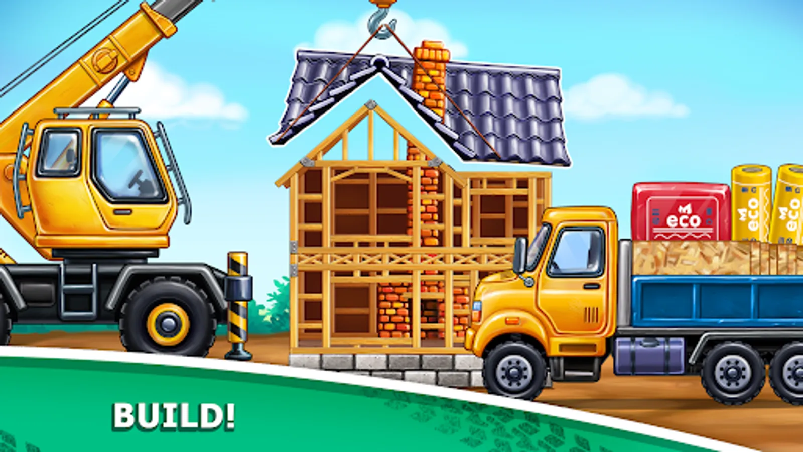 CONSTRUCT and RIDE your very own construction transport is fairly easy right now! Build cool vehicles with just a few touches and then make a house and a swimming pool. First above you have to build your own transport, then fill trucks for kids with gas on the gas station and then go to the 🔨 house building games where you can build your dream house with the help of cars! After these free games you will have to wash your transport truck game in the car wash. Move from level to level you will know how to build a house and soon your dream house will be done!