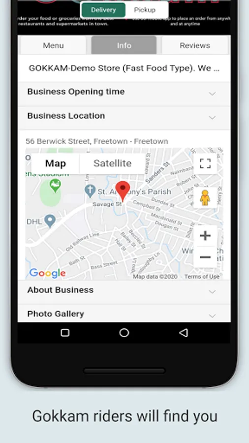 The Gokkam is an app that allows you to order food and groceries from any restaurant or supermarket of your choice in Freetown. You can order anything from any of the businesses on the Gokkam app and have your order safely delivered at your doorstep within minutes.