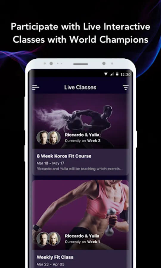 HOW TO JOIN AND ACCESS THE KOROS APP NEW TO Koros? Download the app and get started with a 7 day free trial and take sample prerecorded classes, tips of the day, even take one live and interactive class with the World Champions, then subscribe and have full access for $49.99 per month. Or skip the free trial and subscribe immediately to have instant full access to everything Koros app has to offer for just $49.99 per month.