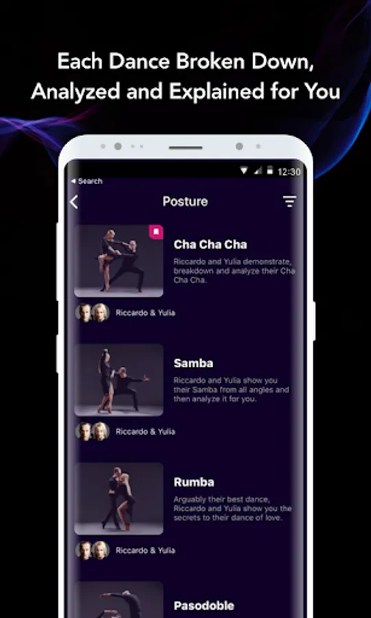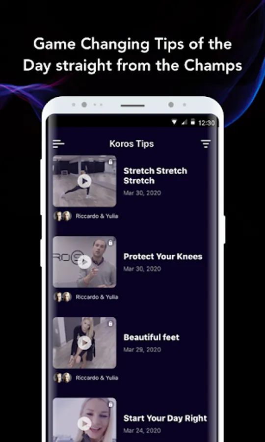 Never miss a day of dance ever again. You can literally take a class with the world champions everyday from now on. Live classes include: "Riccardo and Yulia technique” and "Riccardo and Yulia how to compete”, "Donnie and Heidi technique”. Over 30 World Champion titles between these four. Also, Koros Fit, Koros Style, Koros Talk and more. Tips of the day plus prerecorded classes where the World Champions, first demonstrate then breakdown and analyze their own dancing just for you to watch whenever you want. Laptop, tablet or phone, all your devices, all the time. Now you can take lessons from the World Champions anywhere. Koros makes the world your dances studio.