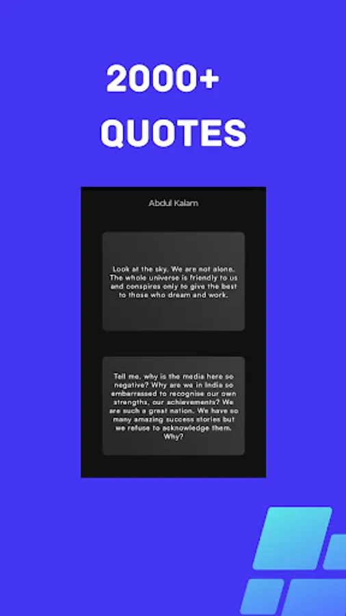 "Best Quotes" is designed to empower you to become your best self. You can easily search for quotes by author or topic, and our app provides daily quotes to keep you motivated and inspired. The app's vast collection of quotes covers a broad range of topics, including success, leadership, love, and happiness.
