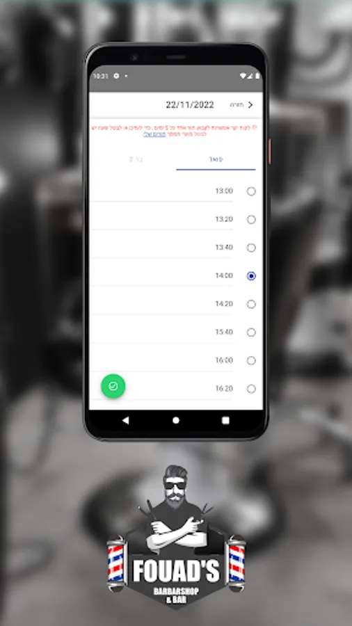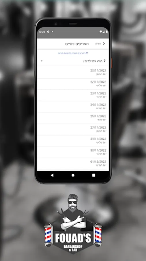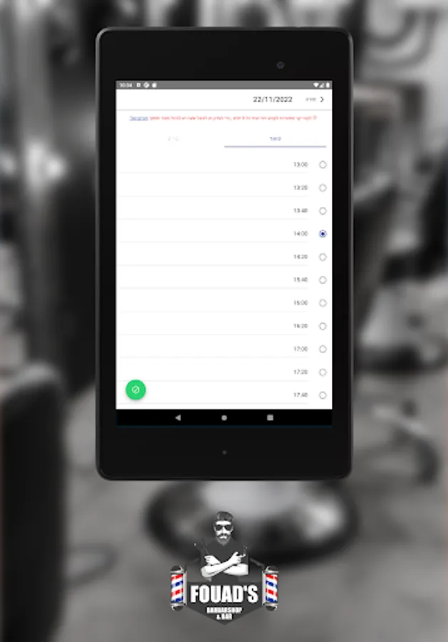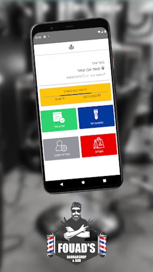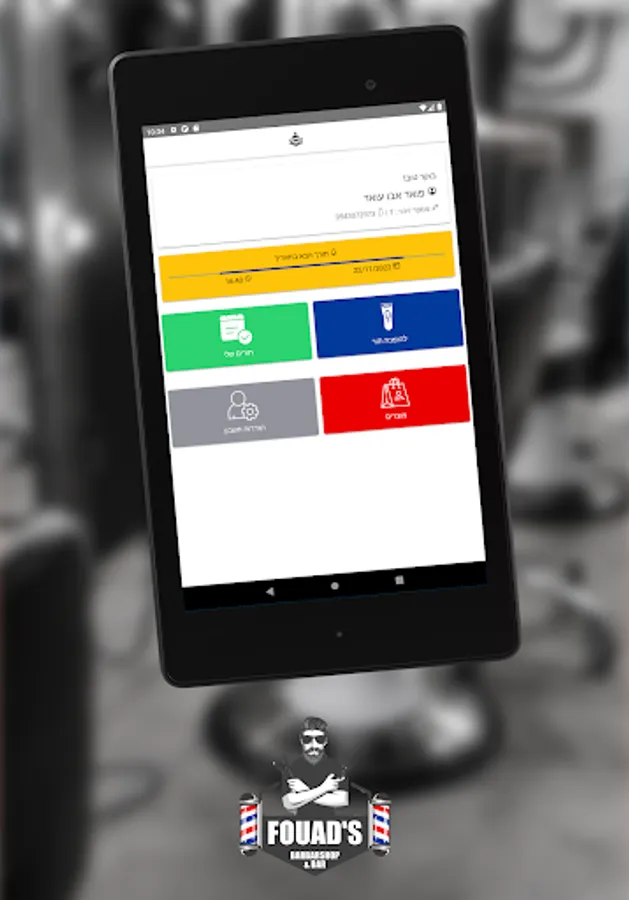 Application for the hair salon of Fouad Abu Owad, Kfar Buqaata, Golan Heights, for booking appointments.