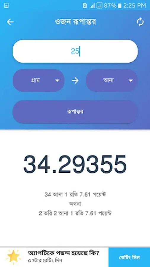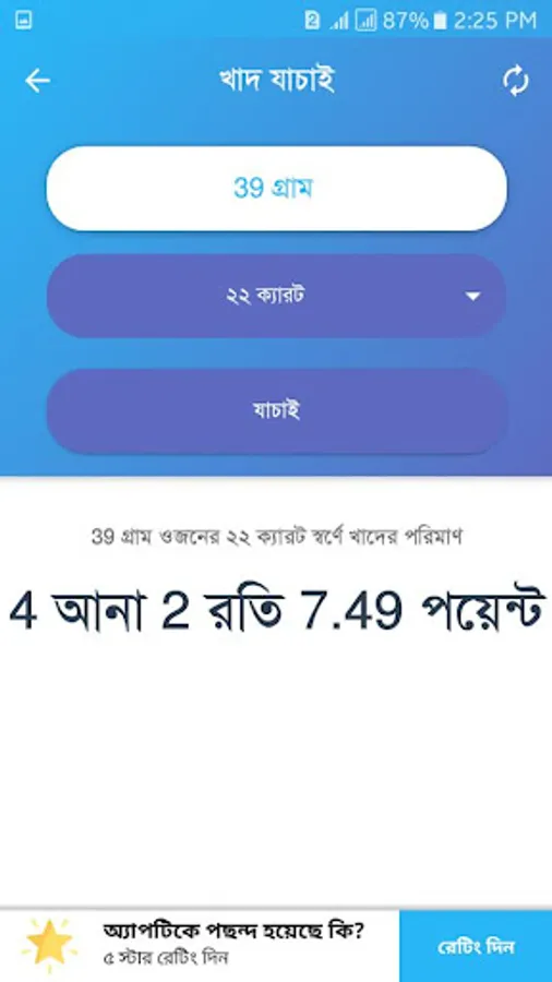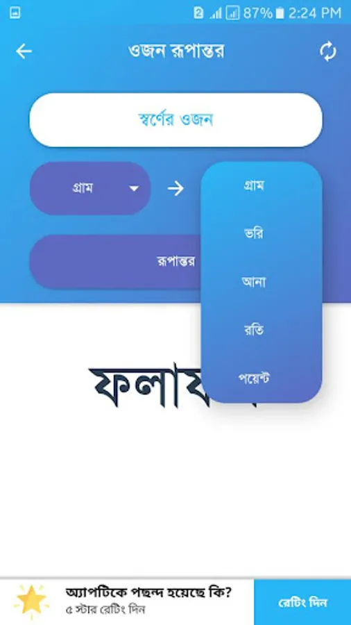 স্বর্ণ খাঁটি তো provides a quick and easy way to convert gold weight from different units. This is the best weight conversion tool in the world. Don’t miss the best weight conversion widget for Android! Download this app Free now!