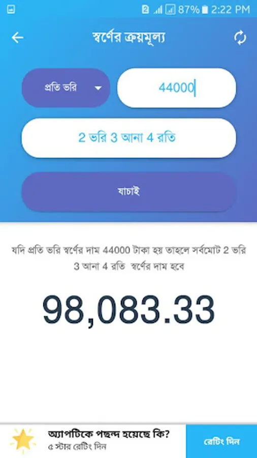 স্বর্ণ খাঁটি তো is one of the best utility apps in the play store to convert gold weight, check gold quality, calculate buy & sell gold price. It allows you to convert the weight of gold also.