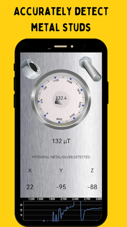 => This magnetic sensor & real metal gold detector makes cool graphical charts of magnetic field intensity Gold & Metal Detector - Finder app.