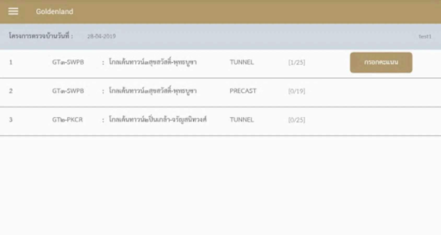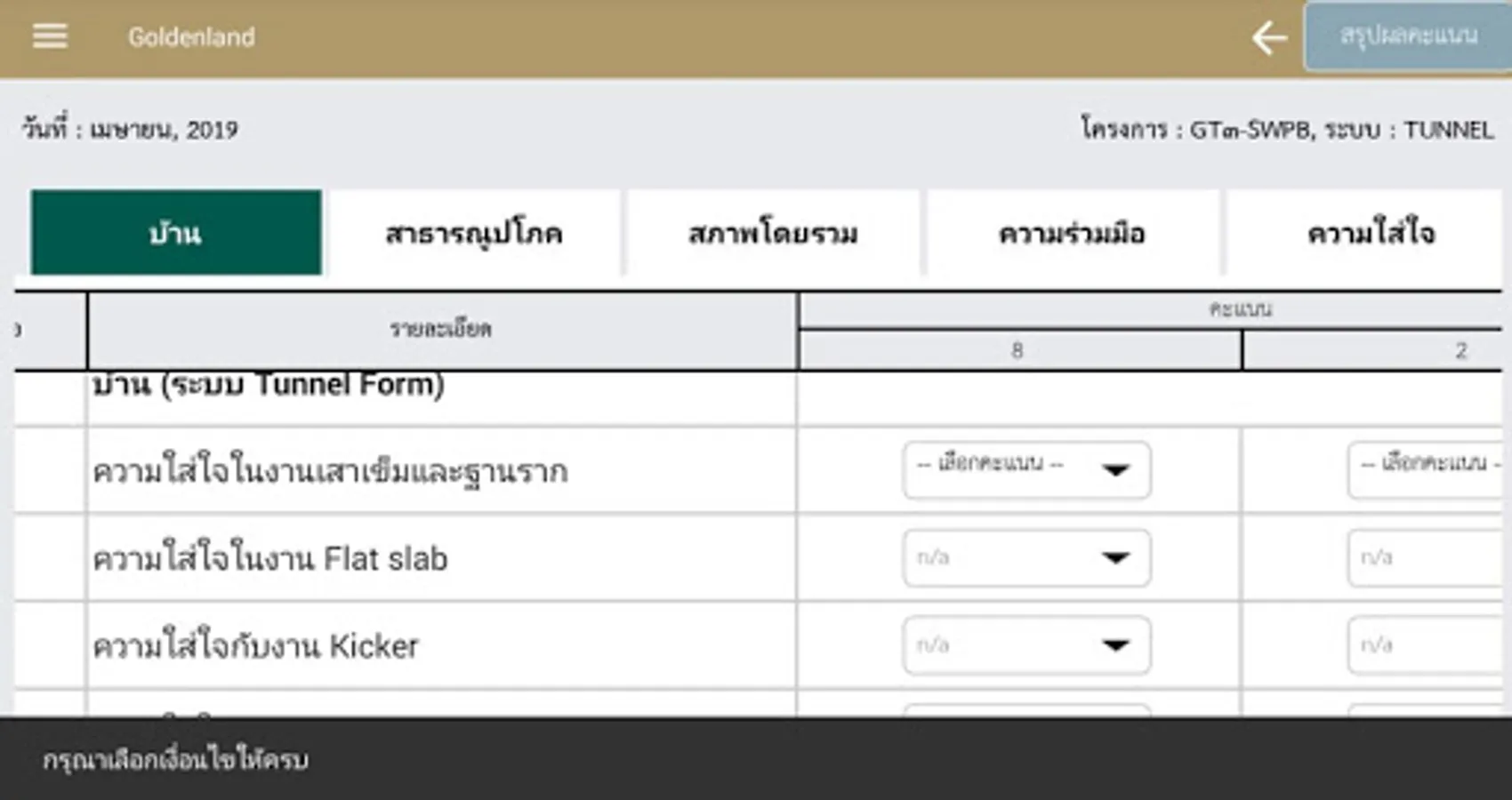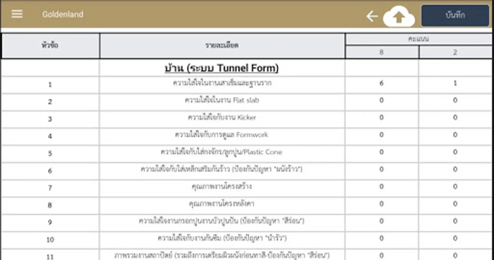 Golden Land Residences has a policy to improve the quality of construction to be of better quality. By using inspection and evaluation of construction quality scores Original inspection Reporting of work inspection and rating Will be done by the inspector and collect all the data using the program excel which takes a lot of work time As well as having the opportunity to make mistakes from such work