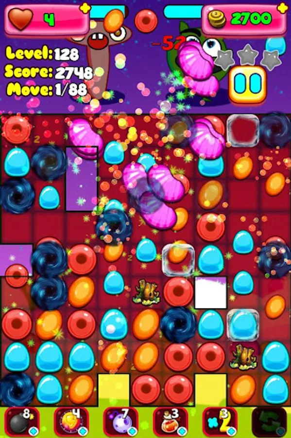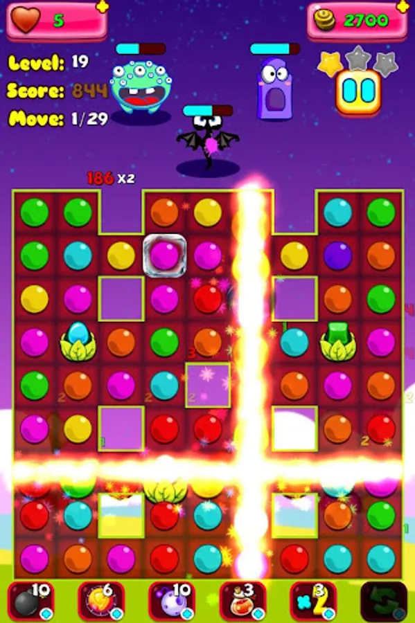 So, in this game, you can enjoy shooting the monster, at the same time, you also can enjoy the eliminating the candies.The Monsters can attack you too, and will occupy your position, or freeze you.