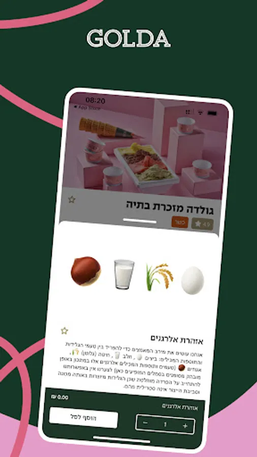 Whether you're celebrating a birthday or just hungry for a sweet treat, you've come to the right place. Golda's app, the Israeli chain of ice cream parlors from the ANITA group, reaches everywhere in Israel nationwide, from Kiryat Shmona to Eilat. In the app you can enjoy unique benefits and important updates before everyone else and most importantly - the accumulation of lek that will be kept in your personal digital wallet (the lek box) so that you can enjoy Golda at attractive prices in the future as well. Think of it simply as happiness in every scoop.