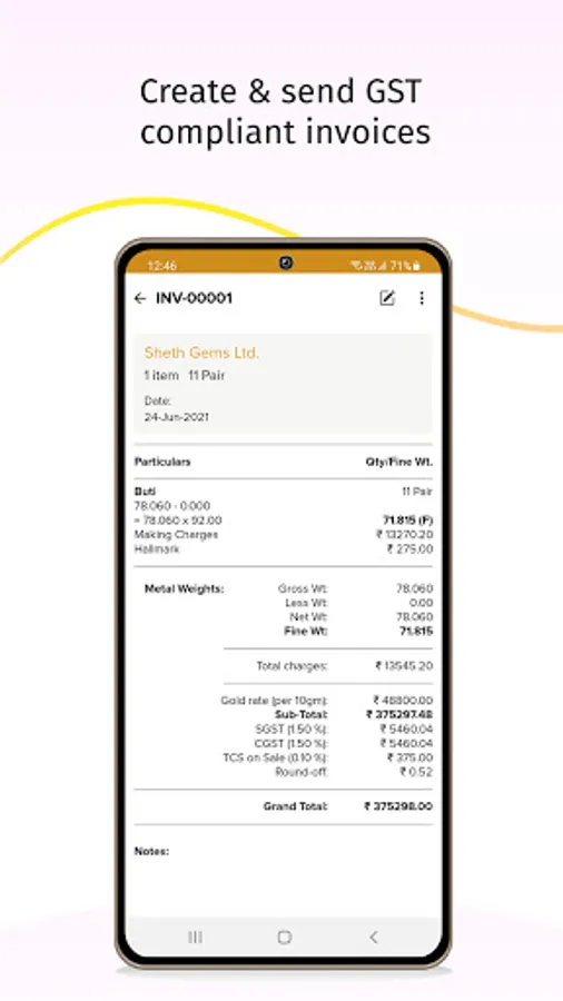 With the GoldBook app, you can send invoices, create purchase bills, generate receipts, manage your expenses and collaborate with your team right from your mobile device.