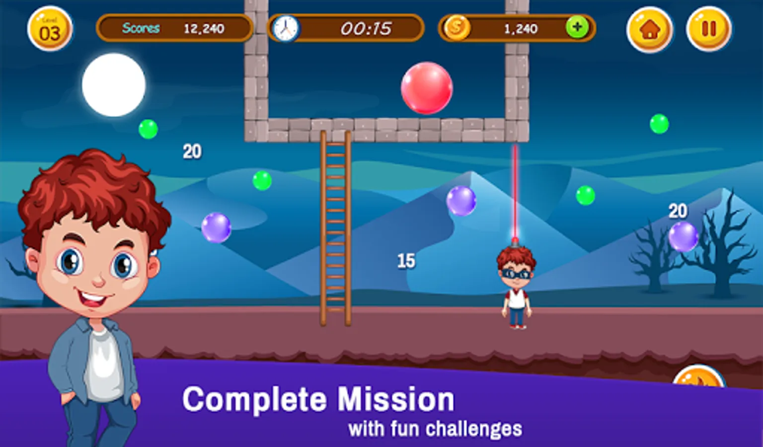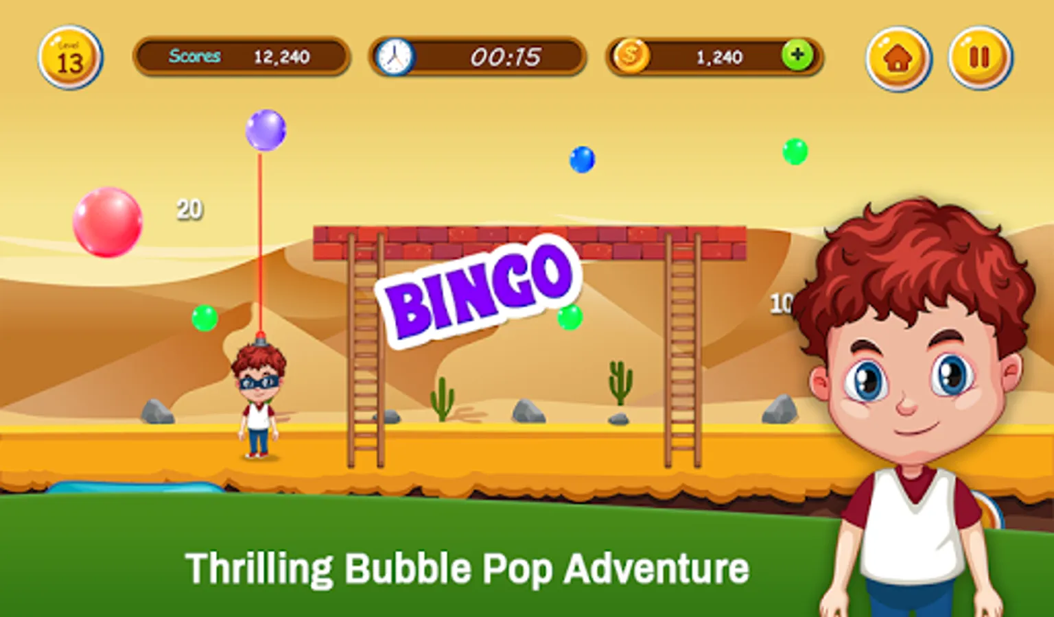 The new bubble shooter arcade game or also known as Buster Bros is remade with new bubble, highly addictive graphics but remaining true to its original form and gameplay struggle free bubble games. Take your character on a red bubble* journey around the world for free through new exciting and carefully 3 made levels. All weapons of the classic, pang, hit and Bubble Trouble are available.