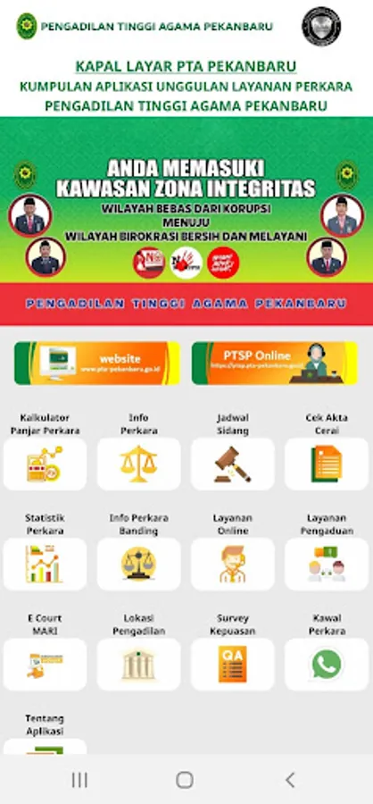 This application is an innovation to improve public services in order to support the development of the Integrity Zone at the Pekanbaru Religious High Court which is a commitment to realizing the implementation of a judicial institution that is free from corruption as well as the implementation of a clean and serving bureaucracy.