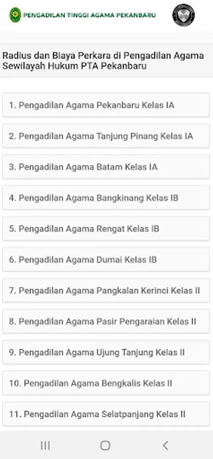 - Location of Religious Courts in the Legal Area of Pekanbaru PTA