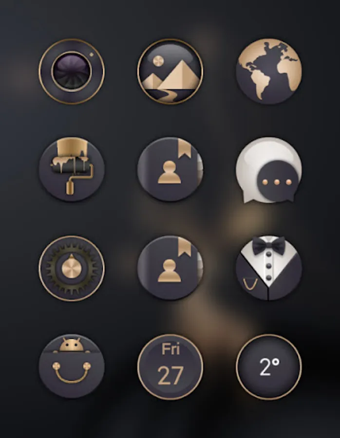 Golden Black Icon Pack gives your phone a premium look. With more than 2600 icons.