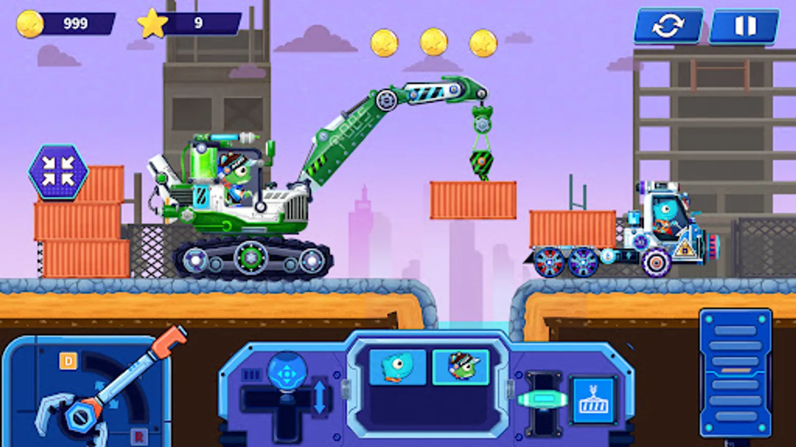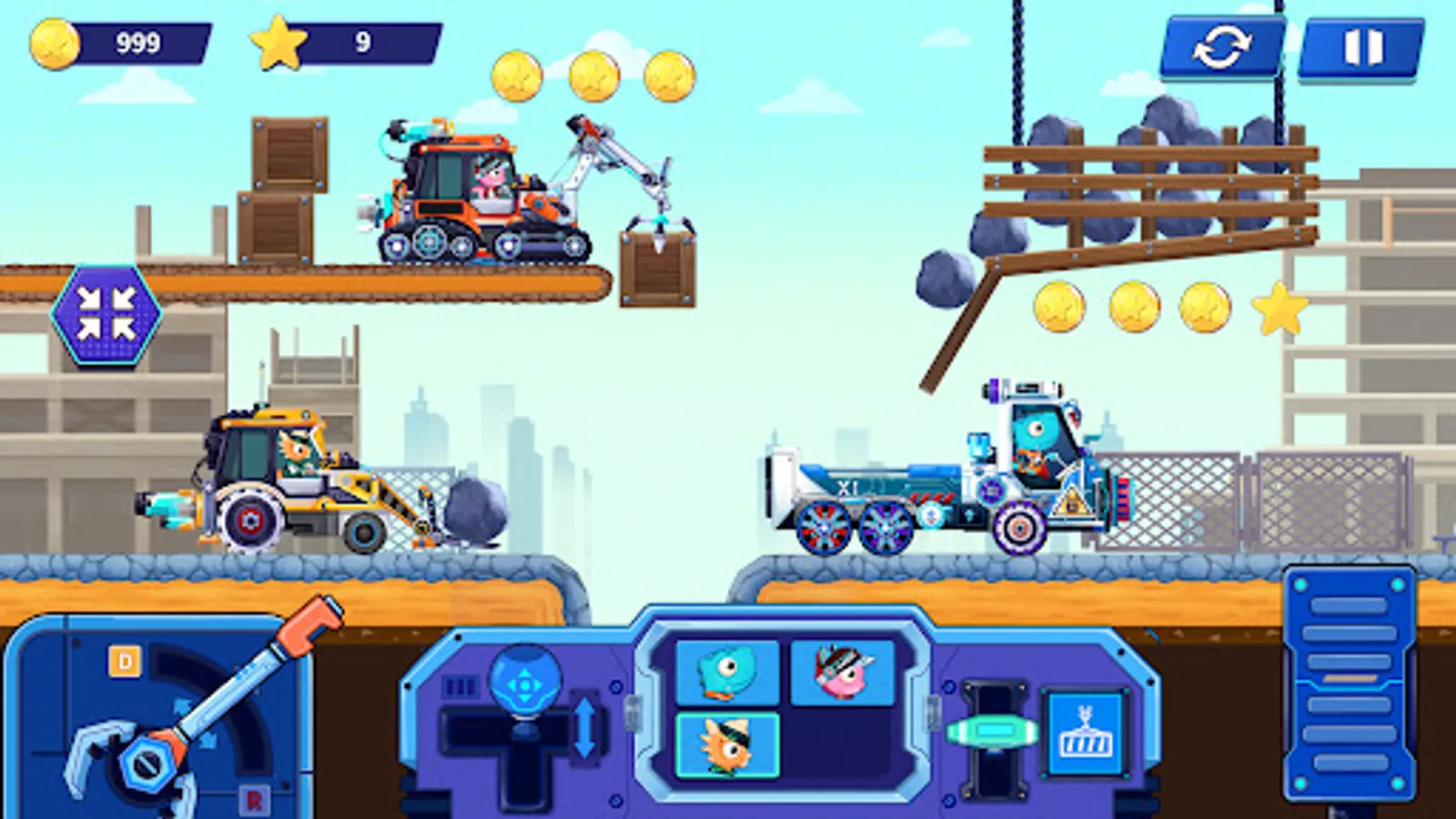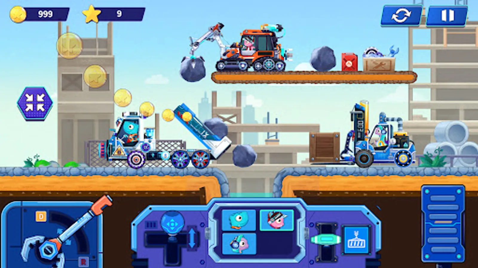 Drive different construction vehicles like trucks, forklift, bulldozer and crane, to name a few, to accomplish various tasks. You need to control all these vehicles and work in coordination to remove obstacles on the road, lift containers, heavy boxes and oil tanks to desination. It's all about teamwork.