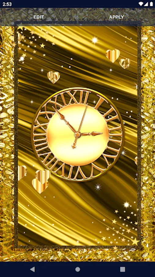 Gold Hearts 4K Wallpaper 💛 Golden live Wallpaper has multiple 4K moving wallpapers with glittery shine and gold images, golden heart backgrounds, sparkling love HD wallpaper, multiple customize options like background changer, frames, animated gold hearts, magic touch, analog clock, emoji, your name and more, that work on the lock screen and they are all FREE!
