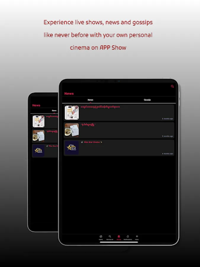 Premium quality Films and Movies with unlimited access to Burmese people in Myanamar as well as around the world who have internet access from the mobile to entertain their pleasure time. App Show is delivering varieties of new entertainment programs such as Cinematic Films, Movies, Live Event, Talk Show, Talent Show, Game Program, News & Gossip, etc. as a entertainment platform to all Myanmar people.