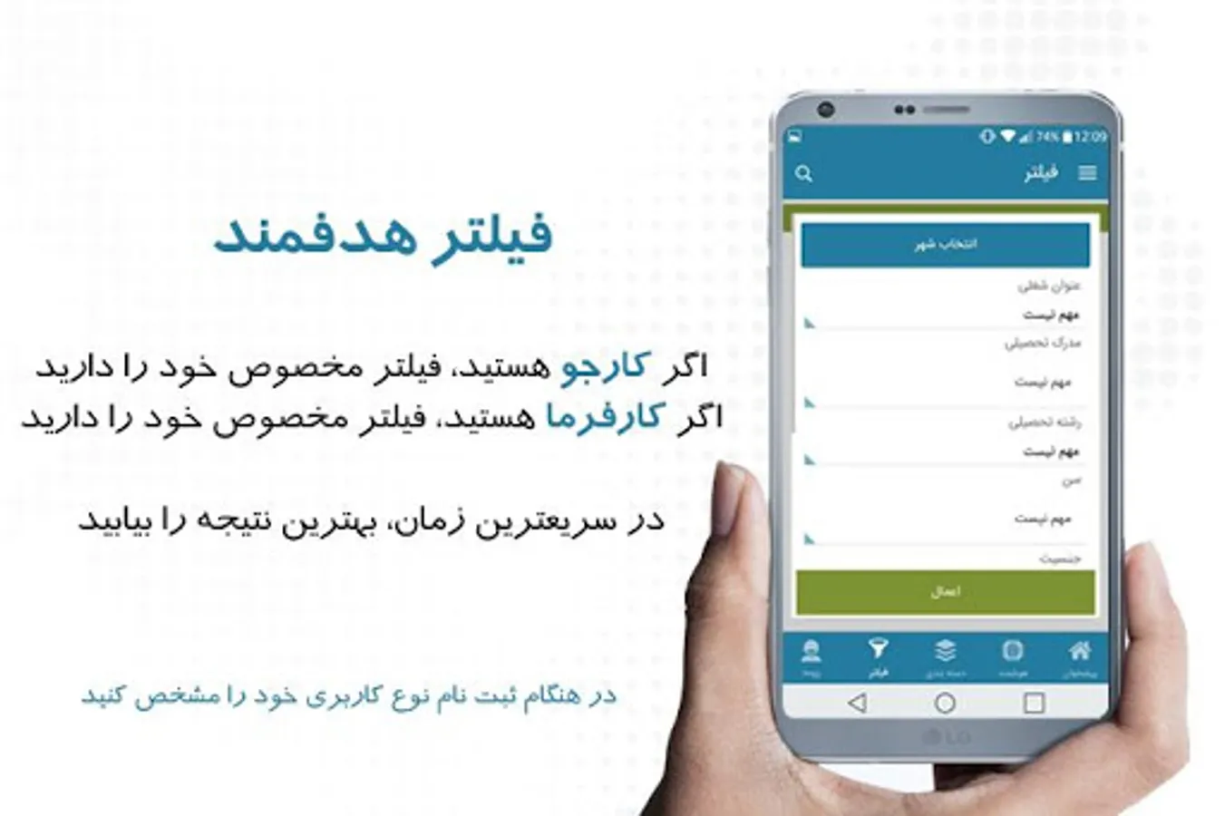 3 - jobseeker's specific menu and features and design their own as well as their profile that can be made during registration Astkhdamchy for them to complete and its special filter or category or search or artificial intelligence to find the best results.