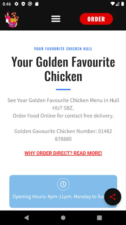 With our app, you can now order DIRECTLY from your phone in seconds. Use our app to order your takeaway and enjoy a growing number of benefits! Taste the difference at Golden Favourite Chicken!